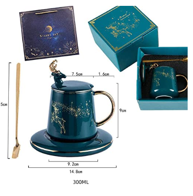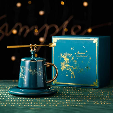 A touch of retro style exudes elegance and beauty. Light luxury peacock green coffee cup is your good choice (deep and elegant peacock green, showing a touch of retro style, exuding charming elegance)